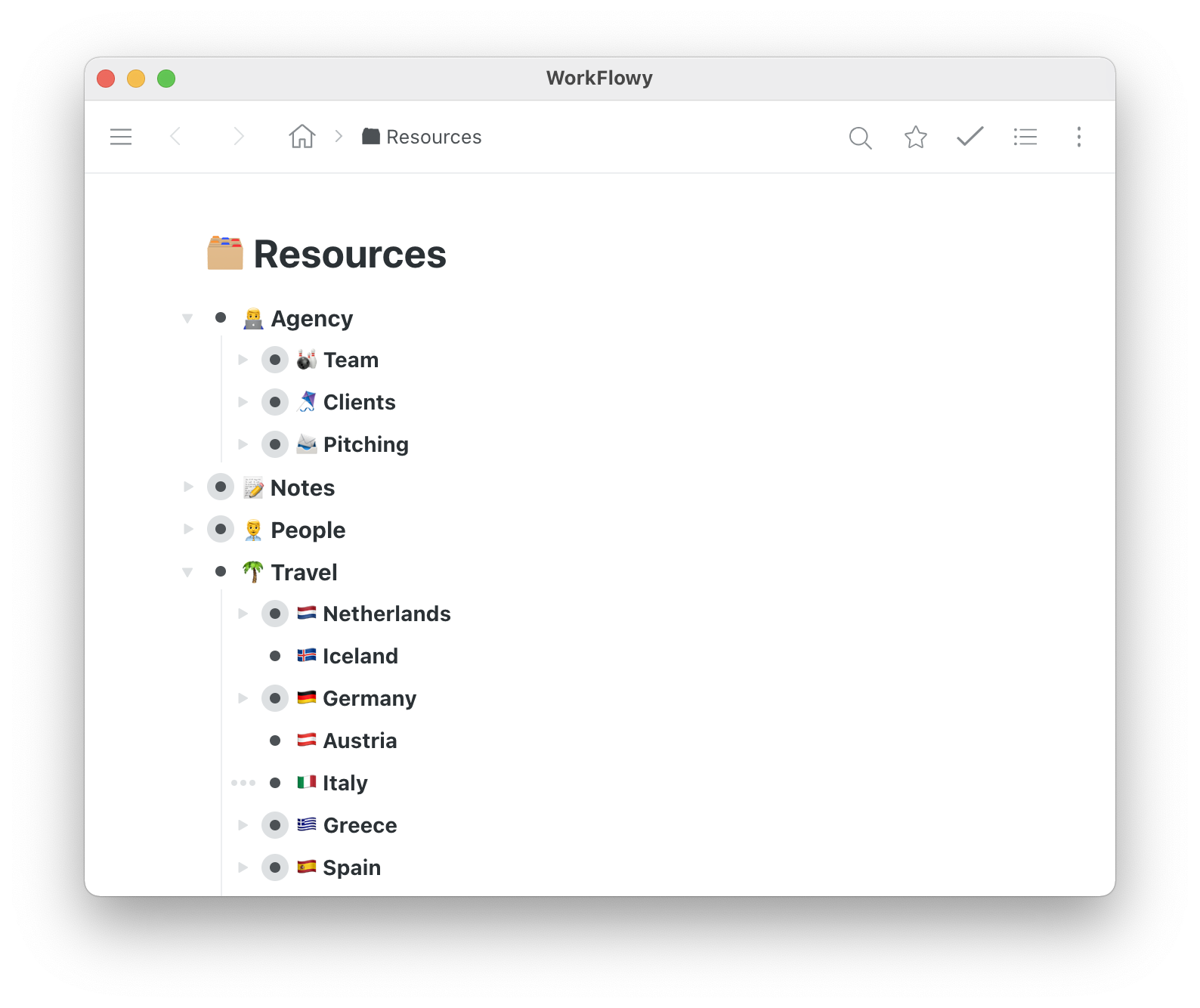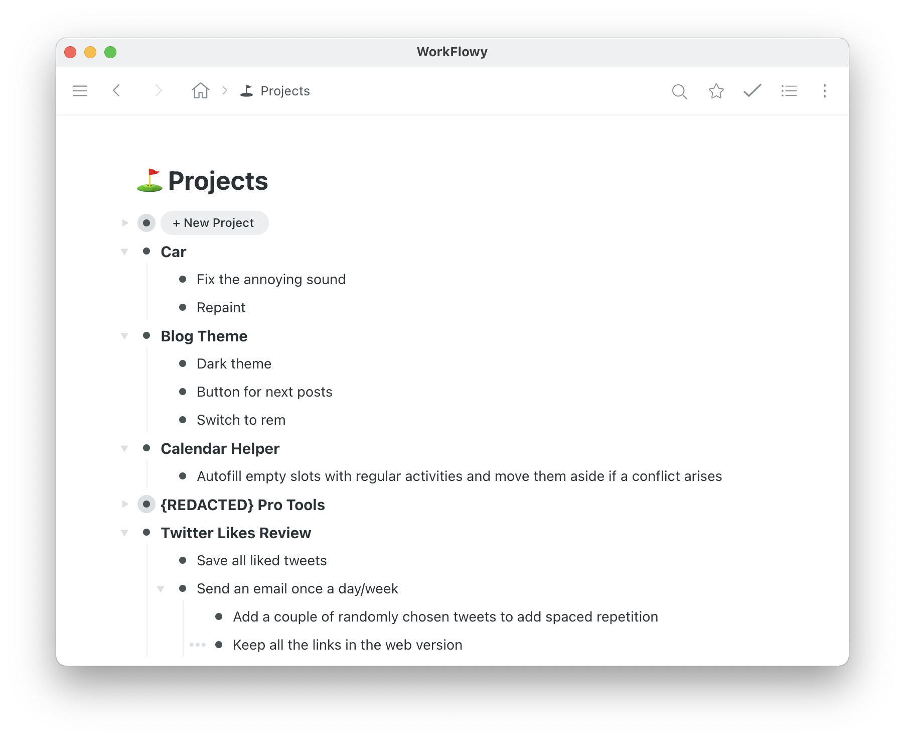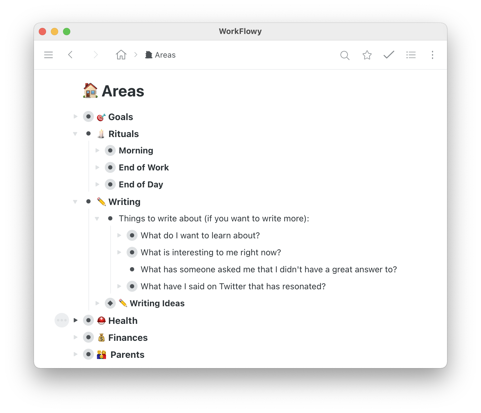 Here’s a screenshot of my home page in Workflowy.