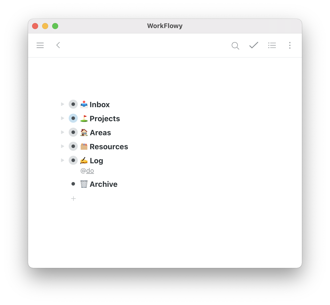 The PARA Method in Workflowy