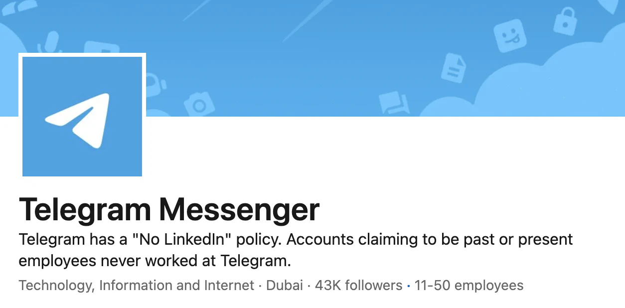 With Telegram, you need a phone to set up your account, but you don’t have to share it. Instead of giving out your phone with iMessage, Signal or WhatsApp or sharing your personal Instagram page, you can send a nickname. This made Telegram especially popular among crypto people who prefer to stay semi-anonymous. It is the default communication app for crypto projects, both for their internal ops, connecting to other businesses and community management. They could use no other single service for all of these things instead.
