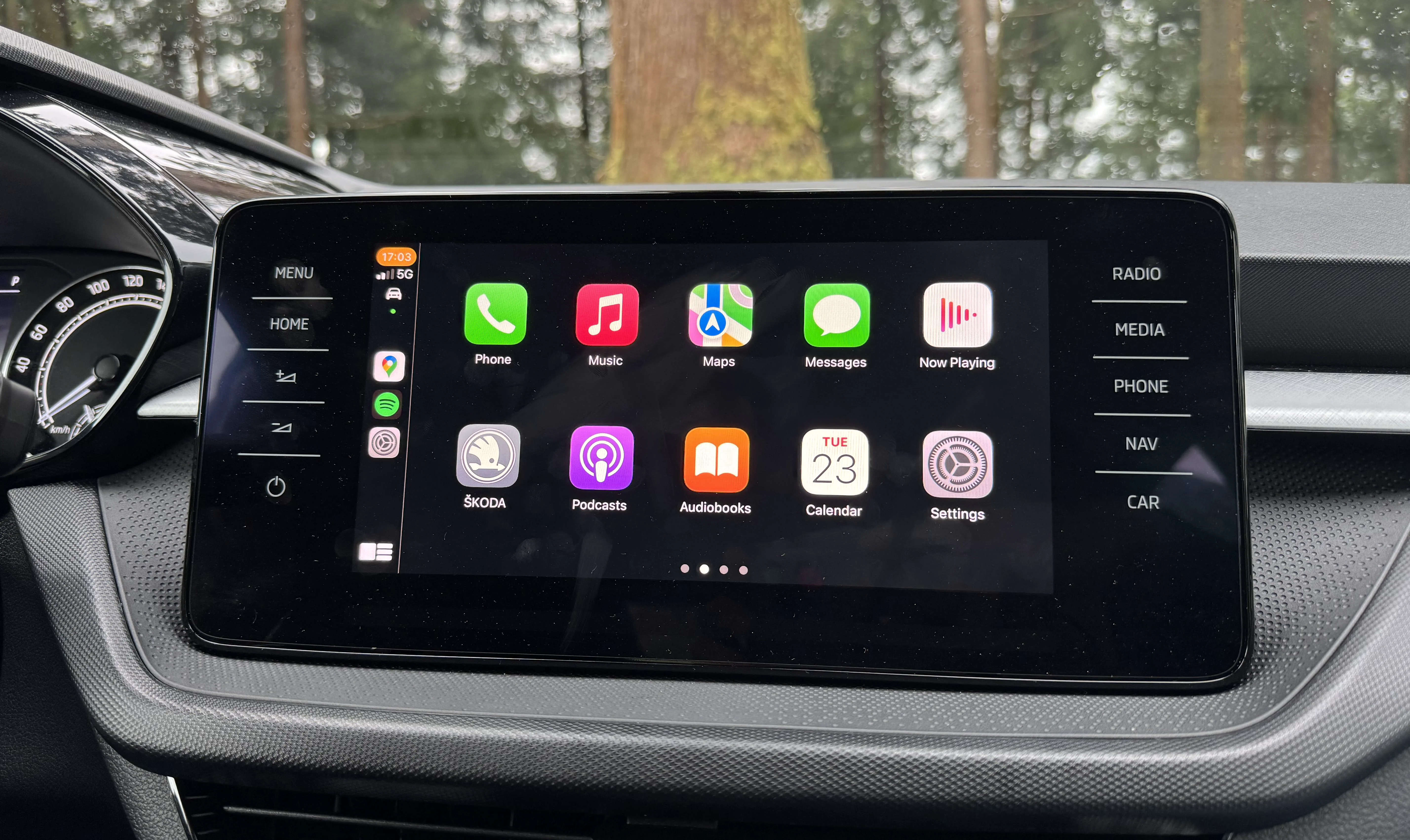 Now, the unique advantage of CarPlay is that you indeed have your phone’s envirionment with all the apps. The world is not limited to the US and Western Europe and other countries have their own maps and music services, which probably have iOS apps. Still, Tesla locks you in with their providers. For a few months it didn’t know they turned a crossing nearby into a roundabout. And I have to use either Apple Podcasts or Spotify to listen to my shows. Well, actually I don’t, because I can continue the same show I had on my morning dog walk by simply tapping the Bluetooth button—everything switches automatically and almost instantly. Still, it’s less native (and I can no longer scroll the episode here either). The audio was a problem we solved years ago and I don’t get why people act so annyoned by having to connect to Bluetooth. The phone is already connected the second I get in anyway.